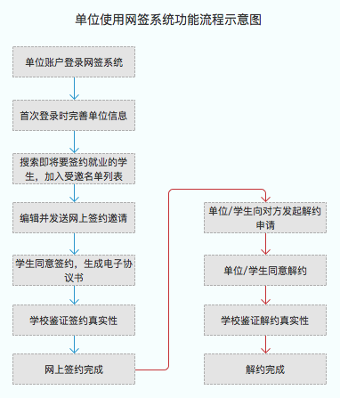 为更好的服务学生、用人单位,并提升学校信息化水平,学校于9月20日起启用电子签约系统。用人单位及毕业生通过湖北高校就业网络联盟电子签约系统完成电子协议书签约流程。网上签约开通时间为2019年9月20日至2020年7月下旬。