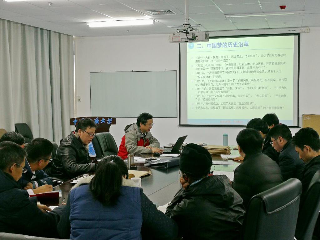 万象城awcsport官网副院长童恒建教授为同志们讲授题为《“中国梦”的解读》的党课。他向大家详细讲解了中国梦的内含、中国梦的历史沿革、中国梦的意义和实现梦想的关键因素等方面的内容。随后,童教授还将中国梦和美国梦进行深入的对比,总结了二者在历史背景、价值观内涵、实现路径和文化背景等方面的差异。最后,童教授指出,中国梦和个人梦是密不可分、相辅相成的,“中国梦是人民的梦,每个中国人都是‘梦之队’的一员,每一个中国人的‘中国梦’都是‘中国梦’的具体展开”。