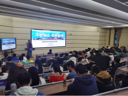 (通讯员:马钊)为深入贯彻落实学校党委《关于开展“我为群众办实事”实践活动》的通知,帮助万象城计算机大类学生们更好的了解专业方向、认识专业内涵,确立人生的重要目标,激励学生们更好的学习,2021年10月28日晚上19:00,在未来城公教2-101教室,信息安全系教师党支部成功举办了一场以“不忘初心,不负韶华”为主题的信息安全专业方向宣讲会。