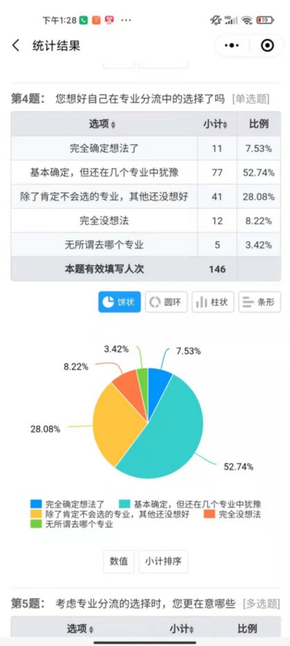 在所有同学当中,只有7.53%是已经完全确定了想法的,剩下的均在选择中,这其中有8.22%是没有任何想法的。