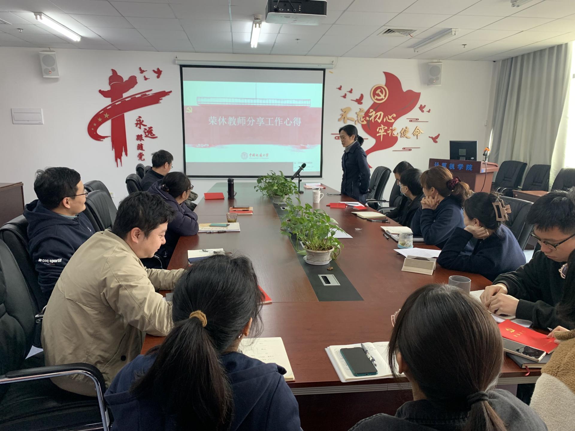 刘文中老师分享了她的工作心得。刘老师深受师生的欢迎,在工作中勤勤恳恳,任劳任怨,将整个青春都奉献给了教师这个光荣的事业,虽然不是党员,却一直践行育人的初心和使命。刘老师远住在汉口,但在排课时候,从来不会对排课时间提出特殊要求,从无怨言;每天上班来回四个小时车程,但她勤勤恳恳,兢兢业业,没有一天缺勤。虽然已经退休了,但她仍然坚持发挥余热,编写了“实验室排课管理系统”,为实验室的信息化建设贡献力量。刘老师认为,工作最重要的就是踏实认真的态度,不管是教学岗位还是实验技术岗位,认认真真对待好每一件小事,做细做实做好,才能无愧于心。同时她也表达了对学校、学院以及同事的祝愿。