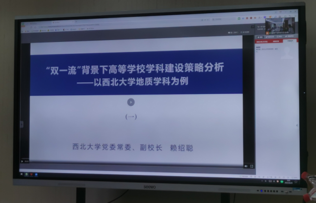 23日下午,第七讲:学习西北大学党委常委、副校长赖绍聪讲座视频“‘双一流’背景下高等学校学科建设策略分析——以西北大学地质学科为例”。