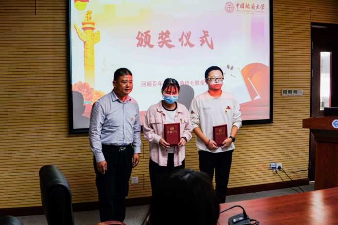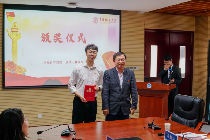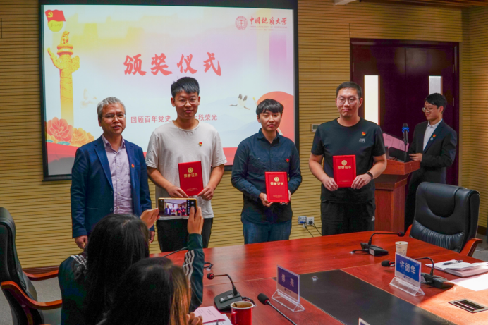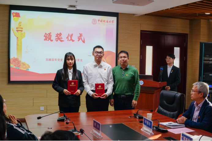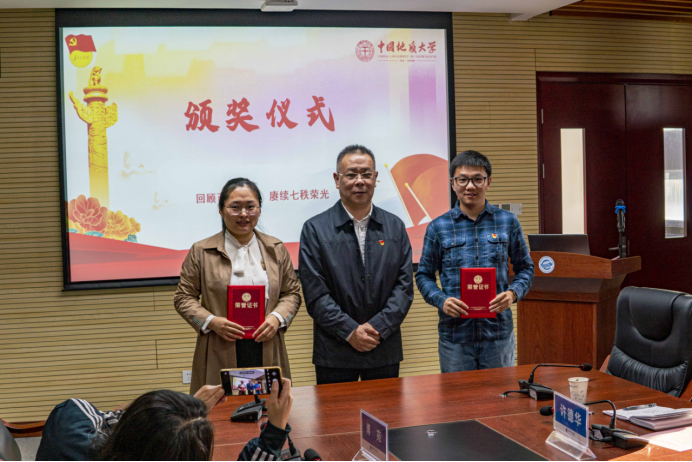 11月2日下午,万象城awcsport官网第九届“支部书记讲党史”学生党支部书记组决赛及颁奖仪式在323会议室隆重举行。校党委副书记、纪委书记唐忠阳,校党委组织部正处级专职组职员梁本哲,高等研究院党委书记赵来时,地理与信息工程学院党委书记许德华,校党委组织部副部长何建新,环境学院党委副书记王海锋,未来城校区办公室副主任、党支部书记高莹莹,材料与化学学院党委委员、材料系第二党支部书记马睿应邀出席,万象城awcsport官网党委书记李国昌,万象城awcsport官网党委副书记、纪委书记傅苑参加活动,教工党支部代表现场观摩。学生党建办公室副主任孔翔担任活动主持。