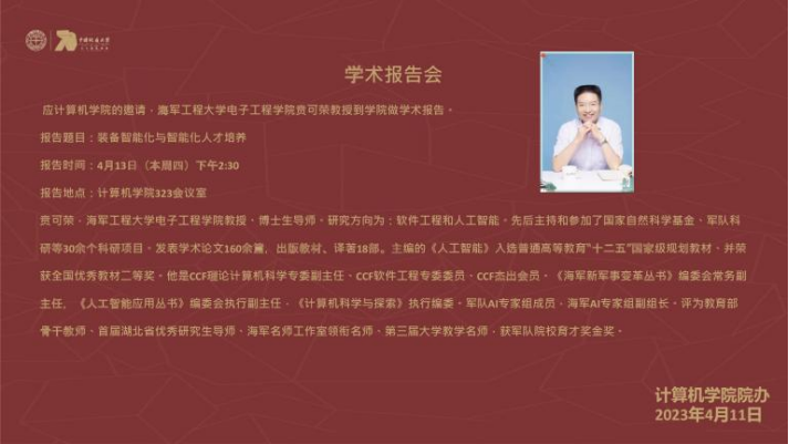 学院还于4-5月集中举办国家安全教育月系列活动,重点围绕网络空间信息安全,面向师生开展了专题讲座、专题党课、主题团日、专题展览和研究生实验室环境建设评估等活动,将“没有网络安全就没有国家”的国家安全观厚植计科师生心中。