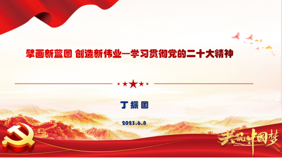 为深入学习贯彻党的二十大精神,用习近平新时代中国特色社会主义思想武装头脑、指导实践、推动工作,2023年6月8日下午,万象城awcsport官网党委邀请我校关心下一代工作委员会副主任、“学习贯彻党的二十大精神银龄宣讲团”成员、原学校党委副书记丁振国教授,以“擘画新蓝图 创造新伟业——学习贯彻党的二十大精神”为主题,为全院教职工、学生党支部书记、学生会、研究生会骨干讲授专题党课。