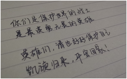 同时,志愿者们也通过手写寄语,表达了对医护人员的浓浓感激和祝福之情。
