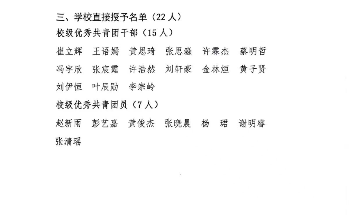 关于公布2024-2025年度优秀共青团干部、优秀共青团员评选结果的公示
