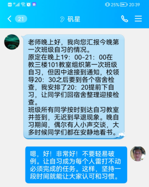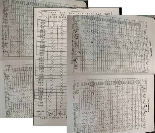 他指导班级制定了每堂课班级考勤制度和每周三次集体晚自习制度。在课堂督促学,在课余时间集体学。