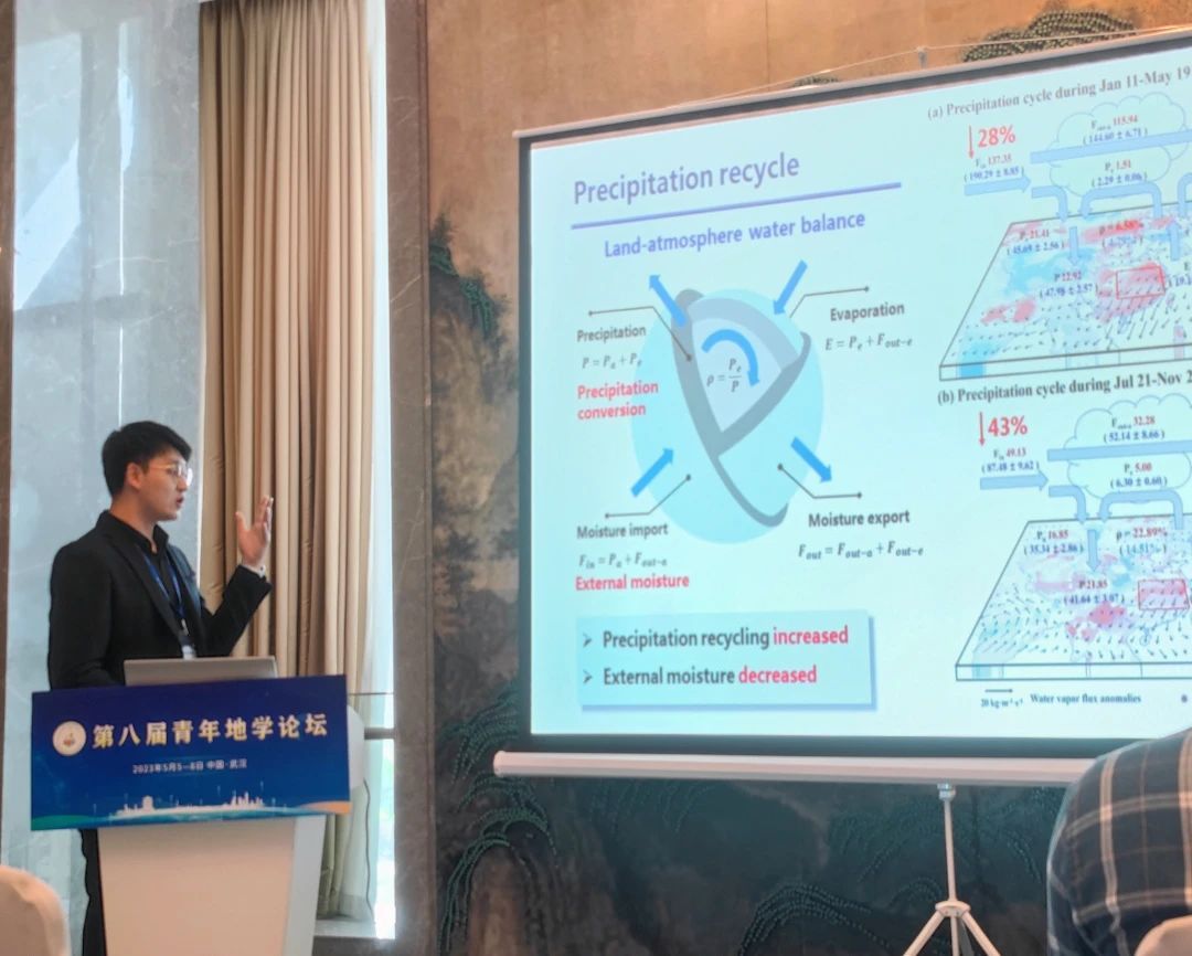 (2)采用机器学习的轨迹聚类算法并将其应用于水汽轨迹追踪过程中,识别了长江中下游极端干旱期间的水汽通道,定量解析了不同水汽源地对干旱事件的贡献。该成果已发表于《Journal of Hydrology》,并在第49届国际水文地质大会(IAH2022)和奥地利维也纳举办的欧洲地球科学学会2023年大会(EGU2023)上进行报告;