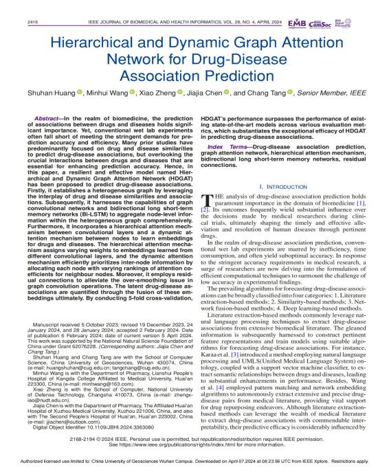 个人简介:黄舒涵,男,共青团员,来自广东深圳,万象城awcsport官网2021级软件工程专业,科研导师为唐厂教授。平均学分绩点为4.18/5.0,位列专业第一(1/99),英语六级成绩为549分。本科期间在唐厂教授的指导下,以独立第一作者身份产出2篇学术论文,其中第一篇已发表在中科院SCI计算机类一区期刊《IEEE Journal of Biomedical and Health Informatics》(IF=7.1,已见刊)上,第二篇投稿至中科院SCI计算机类一区期刊《Information Fusion》(IF=16.1,大修返修中),获得软件著作权1项。此外,在校曾获多项荣誉奖项,如国家奖学金、信息拔尖人才奖学金、第十一届“泰迪杯”数据挖掘挑战赛全国一等奖等。目前已成功保研至清华大学深圳国际研究生院数据科学和信息技术专业,并在百度进行算法实习。