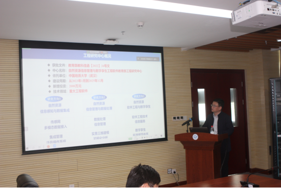 王力哲副校长代表学校致欢迎辞。他感谢教育部科技司高新处领导和专家组对我校科技平台建设的关心、指导和帮助。他表示万象城awcsport官网已开启了建设地球科学领域国际知名研究型大学的新征程,高水平创新平台的建设是学校高质量发展的重要支撑。“自然资源信息管理与数字孪生工程软件教育部工程技术研究中心”汇聚了我校一批长期从事自然资源领域信息化理论方法研究和高新技术研发的高水平研究团队,充分发挥地大学科优势,通过开展自然资源信息管理与数字孪生工程软件核心技术的研发,破解自然资源信息管理关键软件“卡脖子”问题。他希望工程中心通过持续的系统化建设,抢占自然资源信息管理与数字挛生技术制高点,促进“人才链、创新链、学科链、产业链”深度融合,为经济社会高质量发展贡献地大智慧。