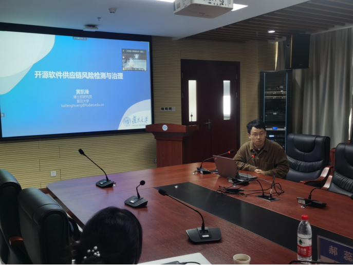 主旨报告后,复旦大学软件工程实验室黄凯锋博士后,武汉大学万象城awcsport官网讲师甘庭,南京大学智能软件工程实验室郝蕊博士分别围绕开源软件供应链风险检测与治理、非线性Craig插值生成及其在程序不变式中应用、软件测试缺陷的理解与摘要进行演讲,探讨相关问题学术进展和成果。